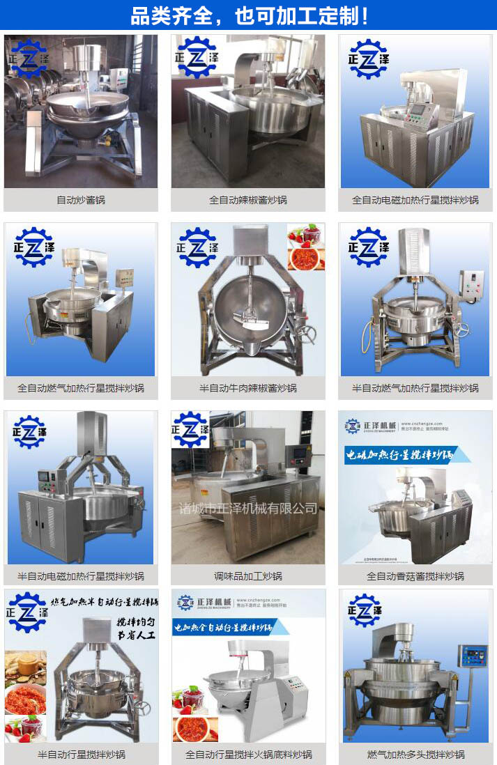 辣椒醬炒鍋|火鍋底料炒料機|醬料熬制鍋|熬糖鍋|阿膠熬制鍋|梨膏熬制鍋|豆沙餡料炒鍋|炒餡機|牛肉煮鍋|熟食鹵煮鍋|燃氣湯鍋|高溫高壓煮鍋|諸城市正澤機械