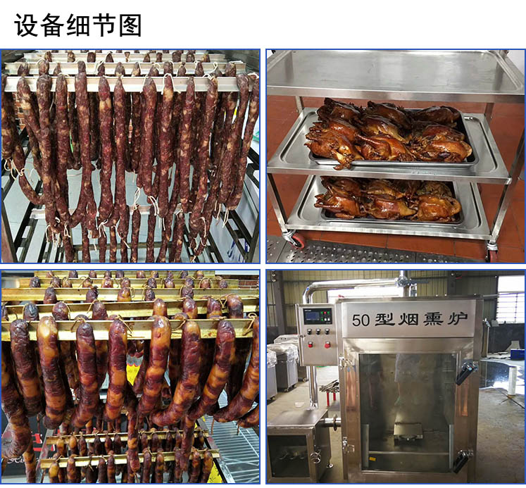 采用計時控制、中心溫度計時控制兩種方式控制煙熏、蒸煮工藝,增加優化節能控制程序,減少能耗??杀O控煙霧溫度,防止溫度過高,安全衛生。多種類型的溫度傳感器可供用戶選擇。新增水循環清晰裝置。