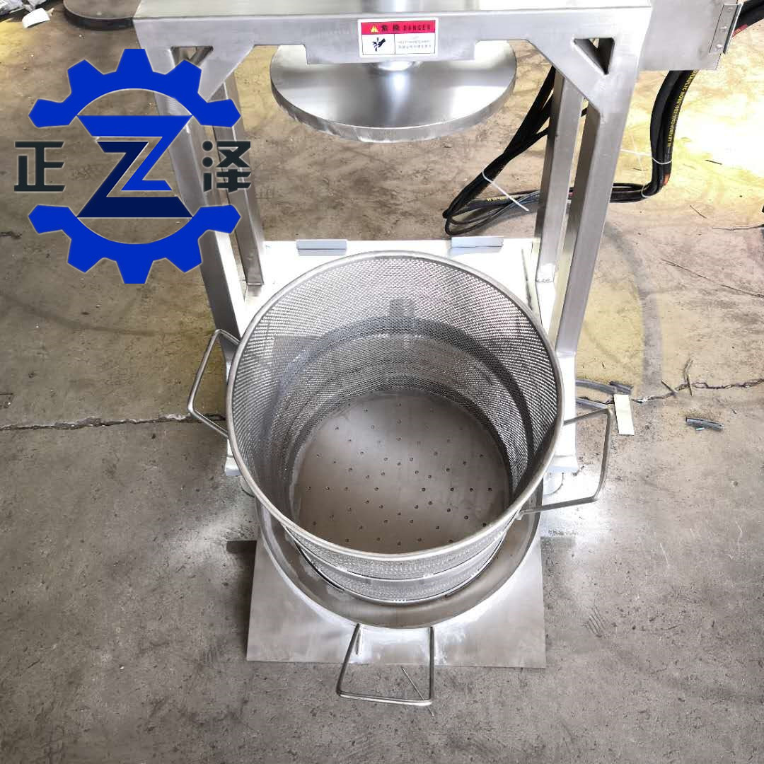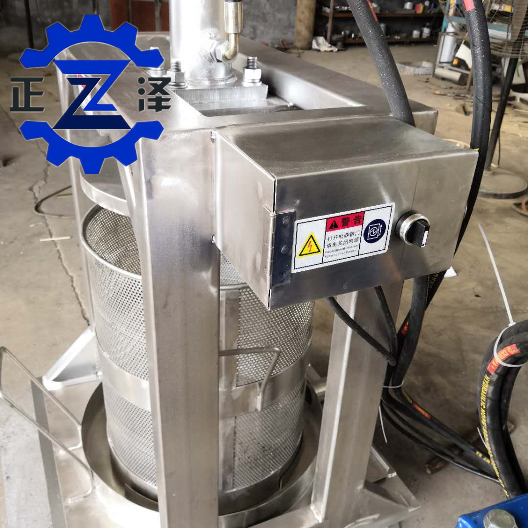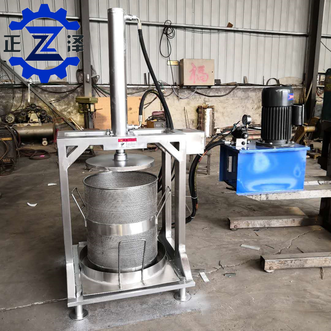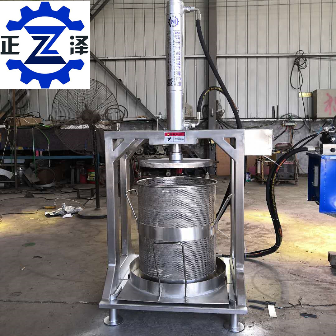 1. 設備是液壓動力進行壓榨,壓力大,省人工,脫水效果理想,通過擠壓液體從壓榨桶孔流出,并順勢流向制定地方,需要收汁者可添加收汁裝置。