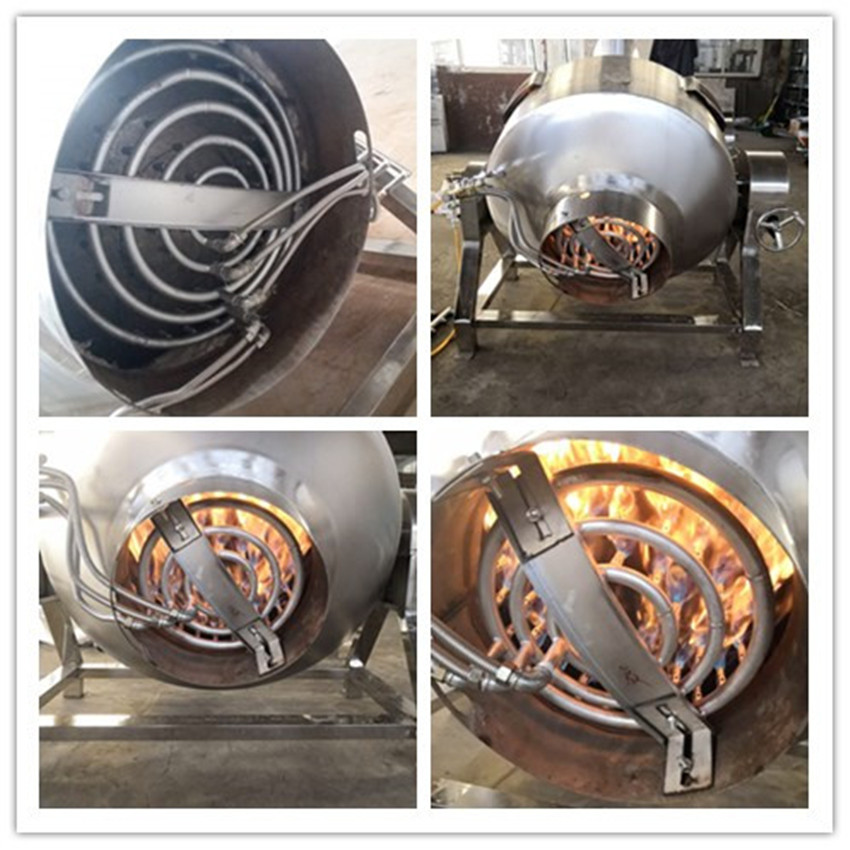 煮肉鍋通常由鍋體和支腳組成,鍋體是由內外球形鍋體組成的雙層結構形式,中間夾層按加熱方式的不同分別加入導熱油或水。