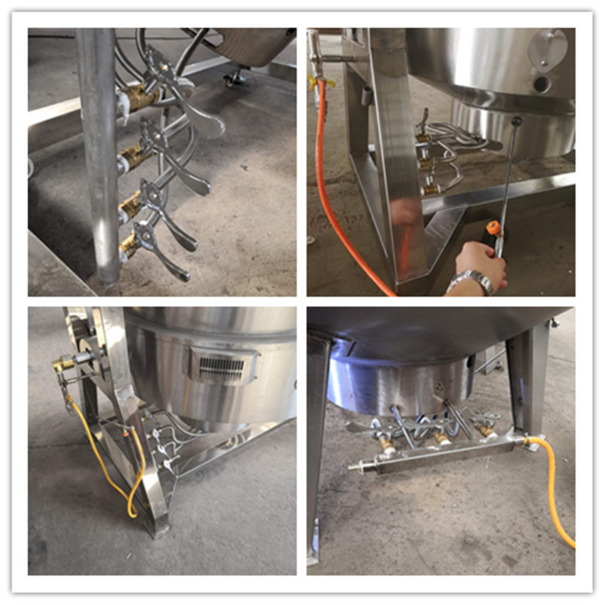 6、大型夾層鍋可傾式蒸煮鍋體最大可傾轉90°,傾轉方式為手動式翻轉。