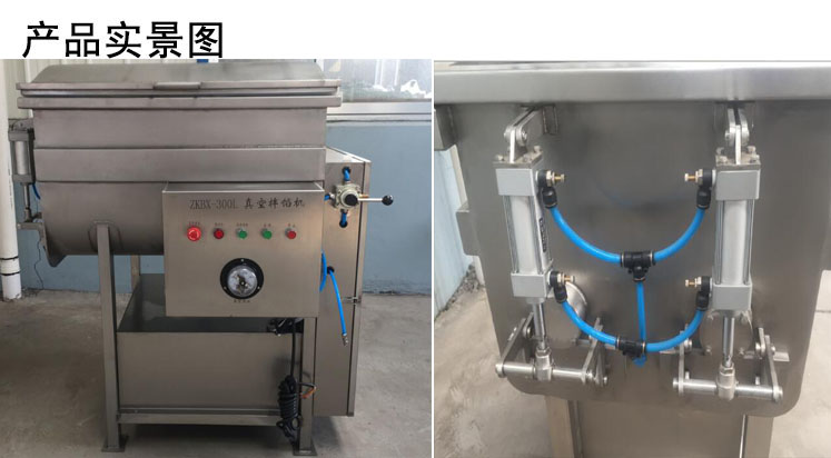 本機為雙軸攪拌,可正反轉換,大大提高了攪拌速度及效果,加上可調真空度,使原料混合更加均勻,更能滿足產品工藝要求,并能將物料前期生產的氣泡抽走,對物料中的細菌進行無氧滅菌,保持肉色鮮亮,提高保質期,不銹鋼制造便于清洗,采用自動控制開關關閉箱蓋、出料蓋、方便省力。